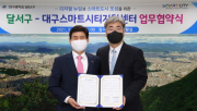 대구 달서구(구청장 이태훈)는 대구스마트시티지원센터(센터장 김현덕)와 3일 구청 5층 상황실에서 디지털 뉴딜과 스마트도시 조성을 위한 업무협약