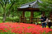 청도군 운문사 입구 아름드리 소나무 숲속에 활짝핀 8만여 송이 꽃무릇이 방문객들의 눈길을 사로잡고 있다.꽃무릇은 꽃이 진 뒤에 잎이 자라기 때
