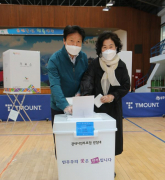 김주수 의성군수가 4월 10일 오후 2시, 금성면문화센터 1층에 위치한 사전투표소를 찾아 한 표를 행사했다. 김 군수는 투표소 입구에서