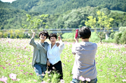 산소카페 청송군(군수 윤경희)에 가을이 성큼 다가 왔다.가을이 오면서 청송군 파천면 송강리의 하천변에는 바람에 흩날리는 코스모스가 연분홍 물결