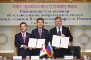 포항시는 지난 9일 러시아 교류도시인 블라디보스토크시와 자매결연 체결을 체결하고, 두 도시 간의 공동번영과 경제·관광·
