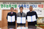 영주농특산물 수출촉진 MOU체결 영주시(시장 장욱현)는 10일 시청 직소민원실에서 싱가포르 한인외식협회(회장 남경수), 안정농업협