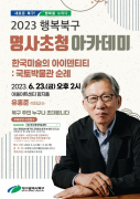 대구 북구청(청장 배광식)는 6월 23일(금) 오후 2시, 어울아트센터 함지홀에서 「2023 행복북구 명사초청 아카데미」6월 강연을 개최한다.
