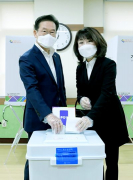 이철우 경상북도지사는 4월 15일 오전 10시경 부인 김재덕 여사와 함께  안동시 풍천면 제1투표소에서 제21대 국회의원 선