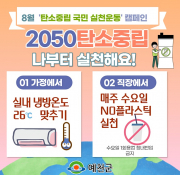 예천군(군수 김학동)이 탄소중립 실천운동을 전개하고 있는 가운데 8월 과제로 ‘가정에서는 실내 냉방 온도 26도 맞추기, 직장에서는 매주 수요