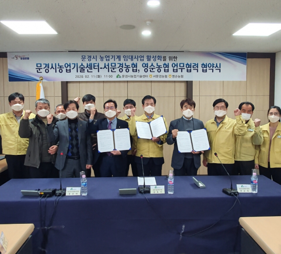 문경시농업기술센터(소장 김옥기)는 지난 2월 11일(화) 11:00, 농업기술센터 2층 소회의실에서 「농업기술센터 - 서문경농업협동조합, 영순농업협동조합」 간의 문경시 농업기계 임대사업 활성화를 위한 업무협약을 체결했다.