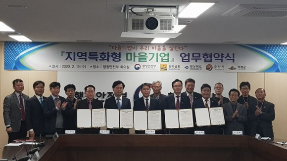 경상북도가 읍면 단위별로 5~10여개 정도의 마을기업을 집중 육성해 마을기업의 지속성과 시너지 효과를 확보하는 사업을 시범실시 한다. 도는 지난 2월 19일 행정안전부 별관에서 행정안전부․의성군․전라남도․순천시와 지역특화형 마을기업 육성사업 업무협약을 체결했다.