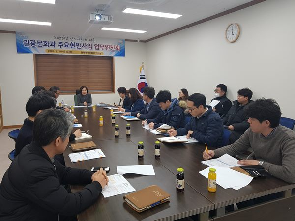 의성군(군수 김주수)은 지난 2월 19일, 관광경제농업국 회의실에서 2020년도 상반기 직원 인사이동에 따른‘2020년도 관광문화과 주요현안사항 연찬회’를 가졌다.