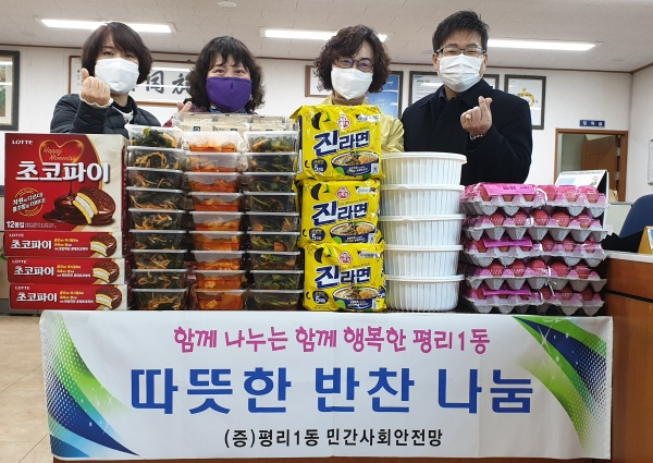 대구 서구 평리1동 민간사회안전망(위원장 장기덕)에서는 지난 20일 저소득 독거 10세대에 매월 정기적으로 밑반찬과 간식을 전달하며 안부를 확인하는 ‘함께 나누는 함께 행복한 평리1동 만들기’에 동참했다.