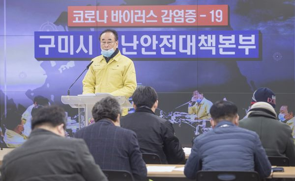 감염병의 특성상, 시의 대응만으로 성과를 내는 데에는 한계가 있습니다. 시민 한분 한분이 지역사회 확산을 막기 위해 협조해 주시길 간곡히 부탁드리며, 시에서도 대구와 경산 등 다른 지역에서 출퇴근하는 공무원들은 사태가 진정될 때까지 솔선수범해서 구미 관내에서 출퇴근토록 긴급지시하였습니다. 시민여러분께서도 지금까지 해 오신 것처럼 구미시를 믿고 침착하게 대처해주시기를 부탁드립니다. 구미시는 시민여러분을 반드시 보호하고 지켜내겠습니다.