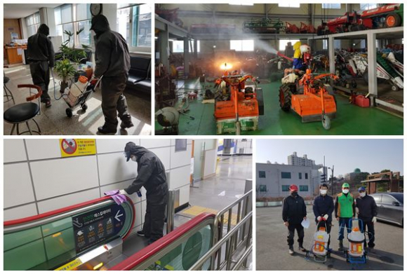 이와 더불어 지역단체의 자원봉사 방역이 이어지고 있는 가운데 , 마을별로는 서부2동, 남산면, 북부동, 하양읍등 자체 방역활동을 실시하였고, 농업기술센터는 농가에 미칠 영향을 최소화하기위해 농민들이 많이 찾는 농기계 임대사업소 및 분소, 농업인 교육관등을 방역차량 및 소독분무기를 이용하여 매일 1회 이상 방역 소독한다.