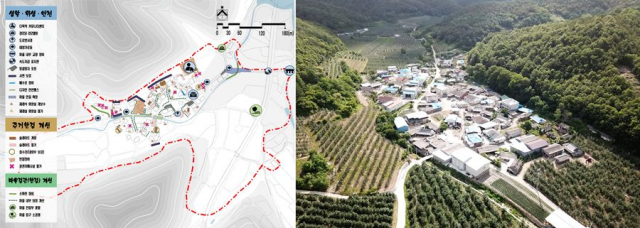| ↑↑ (좌)종합계획도, (우)화목리 전경 |