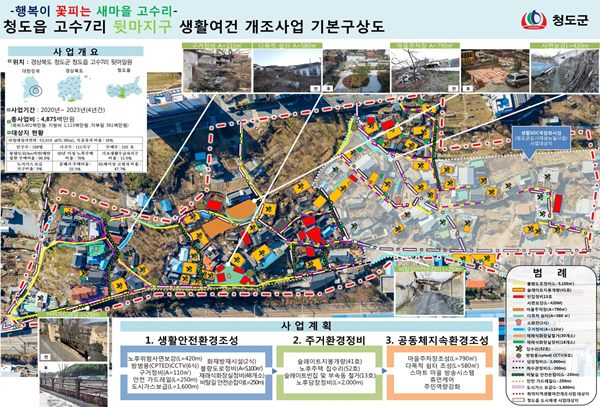 청도군은 본 사업을 통해 주민들의 취약 환경을 개선하여 행복지수를 업그레이드하고 주민 삶의 질을 향상시킴으로써 안전하고 살기 좋은 환경을 조성할 계획이다.