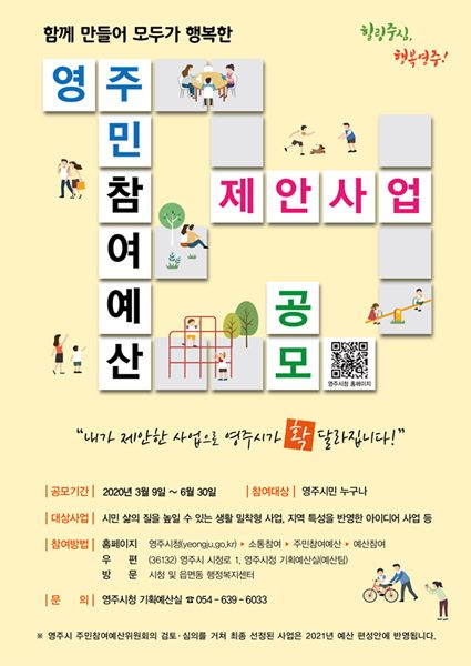 경북 영주시(시장 장욱현)는 지난 3월 9일부터 2021년 주민참여예산 제안사업을 공모한다고 밝혔다.