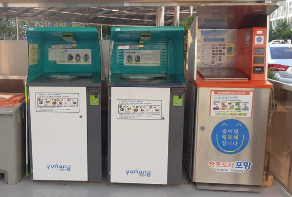 포항시는 2011년 환경부 공모사업에서 시범사업 기관으로 선정되어 국․도비 19억원의 예산을 받아 전국 최초로 음식물쓰레기 계량장비를 도입하게 되었으며, 현재 1,246여 대가 운영 중이다.