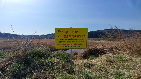 각종 영농폐기물 및 생활쓰레기 등 불법 소각을 막기 위해 낙동강 제방주변 상습 소각지역에 안내판을 설치하고 주기적으로 순찰 및 단속을 강화하는 한편 불법 소각행위 적발시에는 ‘폐기물관리법’에 의해 100만원 이하의 과태료를 부과할 계획이다.
