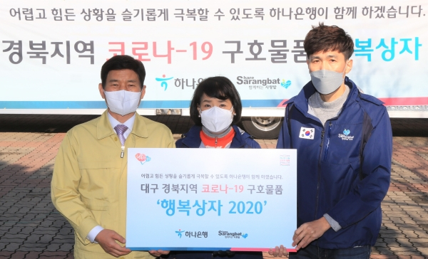 이번 구호물품 키트는 하나은행 임직원들이 코로나 19 위기를 극복하고자 모은 1억원 성금으로 (사)함께하는 사랑밭에서 키트를 직접 제작했다.
