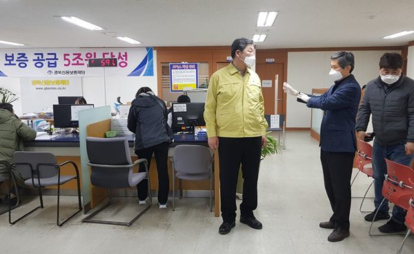 경상북도의회 장경식 의장은 코로나19로 지역 경제가 극심한 피해를 입게 됨에 따라, 3월 16일 포항에 위치한 경상북도경제진흥원(동부지소) 및 경북신용보증재단(포항지점)을 방문해 경영안정자금 지원 등 추진상황을 점검하고 관계자를 격려했다.