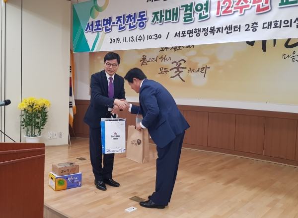 김상열 진천동장은 “코로나19로 힘든 시기에 자매결연 도시인 사천시 서포면에서 주민자치위원회를 필두로 각급단체가 십시일반으로 성금 320만 원을 보내주어 진심으로 감사드리며, 어려운 시기 극복을 위해 소중하게 사용하겠다.”고 말했다.