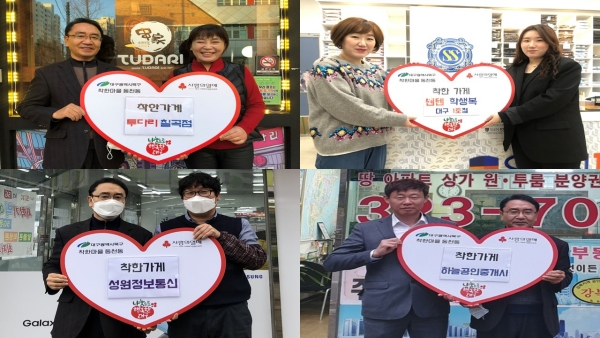 동천동 방위협의회 박상창(투다리 칠곡점), 박승섭(쎈텐학생복 대구1호점), 조춘식(하늘공인중개사), 최종철(성원정보통신) 회원은 대구사회복지공동모금회에 매월 정기기부를 약속하고, 착한가게에 가입했다.