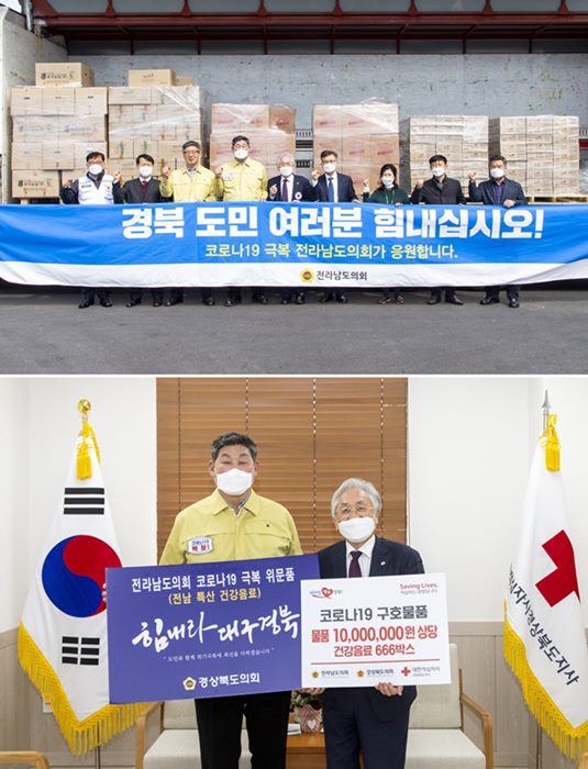 이어 2월말 장경식 의장이 서울시의회에 지원 요청한 건을 서울시장이 적극 수용한 결과 3월 3일 2억원 상당의 마스크 96,600매를 경북에 지원하게 되었으며, 전남도의회에서는 3월 17일 1천만원 상당의 지역특산품을 도의회를 통해 경북도 적십자사에 전달한 바 있다.