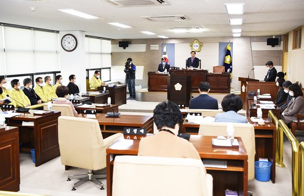 심칠 의장은 개회사를 통해 “신종 코로나 바이러스의 확산으로 군민의 안전을 위해 애쓰는 공직자 여러분께 감사와 격려의 말씀을 전하고, 높은 군민의식으로 슬기롭게 대처하고 있는 군민들께도 감사드린다”며, “하루빨리 코로나19가 진정국면에 접어들기를 기원한다”고 말했다. 또한 “추경 예산안에 대해 시급성과 형평성을 고려하여 지역경제 활성화에 기여할 수 있도록 다각적이고 세심한 심사를 하여 바람직한 대안을 제시해 달라”고 당부했다.