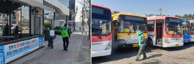 특히 최근 확진자가 발생하고 있는 콜센터, PC방, 노래연습장, 학원, 종교시설 등 다중이용시설 및 집단시설에 중점적으로 방역을 실시하고 건물 출입구, 손잡이, 복도 등을 소독해 ‘코로나19’ 차단 방역에 온 힘을 쏟았다.