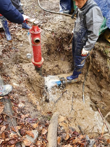 일반직 공무원 3명과 기간제 근로자 2명으로 구성된 누수탐사팀은 오랜 경험과 노하우를 바탕으로 3개월 간 호계면 내 유수율이 낮은 견탄리와 선암리 일대를 집중 탐사 및 수리했고 그 결과 일누수량 550톤을 막는 쾌거를 이루었다.