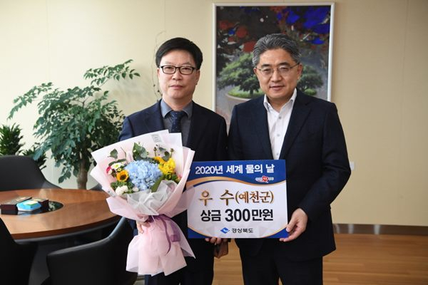 물 관련 사업 적극 대응으로‘청정 예천’이미지 향상 -예천군은 경상북도에서 ‘제28회 세계 물의 날’을 맞아 실시한 기관평가에서 물관리 정책에 기여한 공로를 인정받아 ‘우수상’을 수상하는 쾌거를 거뒀다.