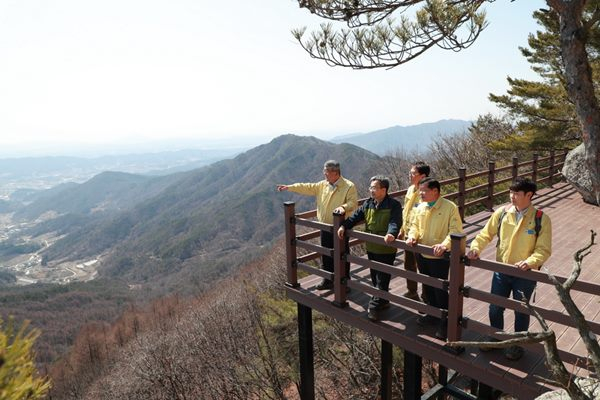 지난 12일 3월말 준공을 앞두고 있는 소백산 하늘자락공원 둘레길 조성 현장을 찾아 현장 상황을 점검하고 차질 없는 사업 마무리를 당부하며 직원 및 관계자들을 격려했다.