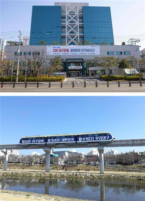 또한「328 대구운동」에 시민들의 적극적인 동참을 유도하고자‘328 대구운동, 함께하며 이겨냅시다!’대형현수막을 본사 정면에 부착했으며, 1,2,3호선 전 역사 대합실에도 부착해 적극 홍보하고 있다.