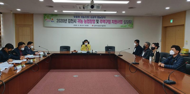 김천시(시장 김충섭)는 지난 3월 18일 김천시농업기술센터 세미나실에서 심의위원 7명이 참석한 가운데, 귀농 융자 분야 지원사업 대상자 선정을 위한 2020년 김천시 귀농 농업창업 및 주택구입 지원사업 심의회를 개최하였다.