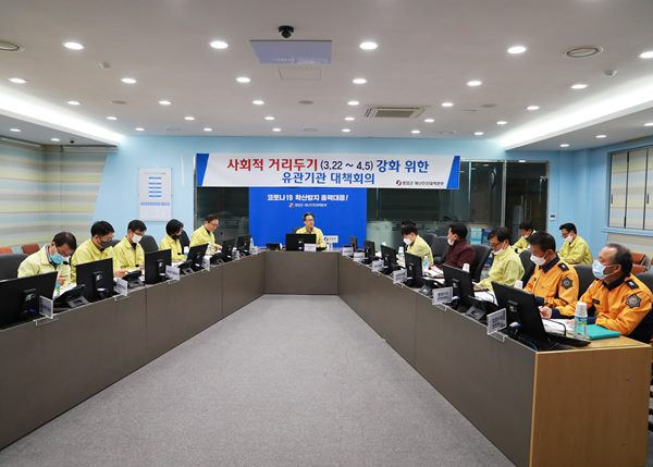 영양군(군수 오도창)은 3월 25일 강도 높은‘사회적 거리두기’를 효율적으로 추진하기 위해 관내 유관기관 합동 대책회의를 개최하였다.