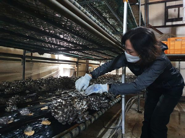 | ↑↑ 버섯농장에서 버섯 수확하는 모습 |