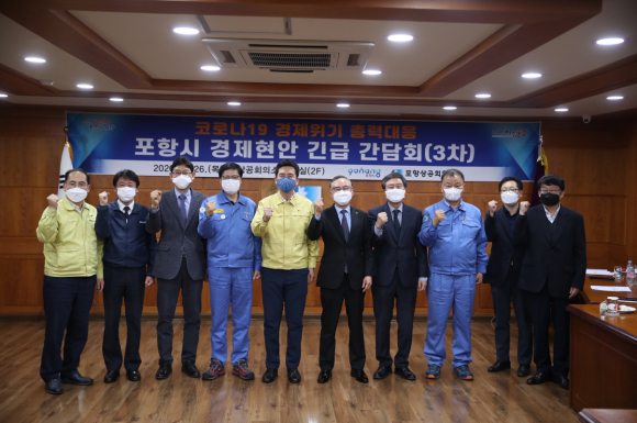 포항시는 지난 3월 26일, ‘경제현안 긴급 간담회’(3차)를 개최하고 ‘코로나19’로 인한 침체된 지역경제 활성화 방안과 기업 지원방안 등을 현안에 대한 실질적인 추진방안에 대하여 논의했다.