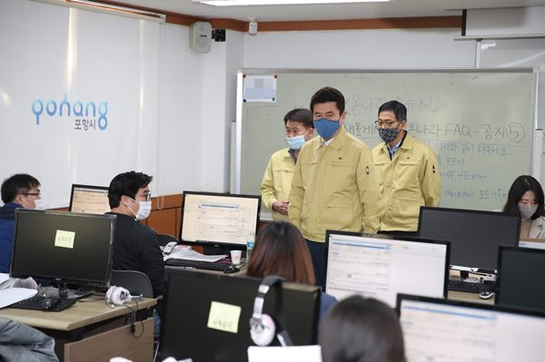 이강덕 포항시장은 4월 2일, 지난 1일부터 신청접수를 받고 있는 재난 긴급생활비 지급의 원활한 실시를 위해 구성된 조사전담 TF팀 사무실을 방문·격려하고 철저한 지원을 당부했다.