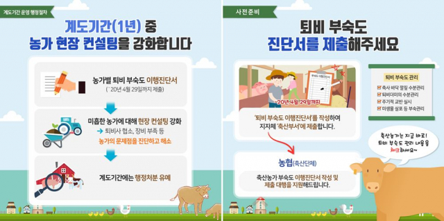 가축분(퇴비) 부숙도 검사 의무화 제도시행 이후 1년 동안은 초기 준비가 미흡한 축산농가의 불편을 최소화하기 위해 행정처분을 유예하는 등 계도위주로 시행하며, 농가 현장 컨설팅을 강화한다.
