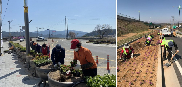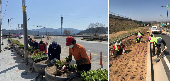 성주읍(읍장 오익창)에서는 4월 6일 별고을체육공원을 찾는 주민들과 내방객들에게 아름답고 쾌적한 환경을 제공하고자 대황교차로에 꽃밭을 조성하였다.