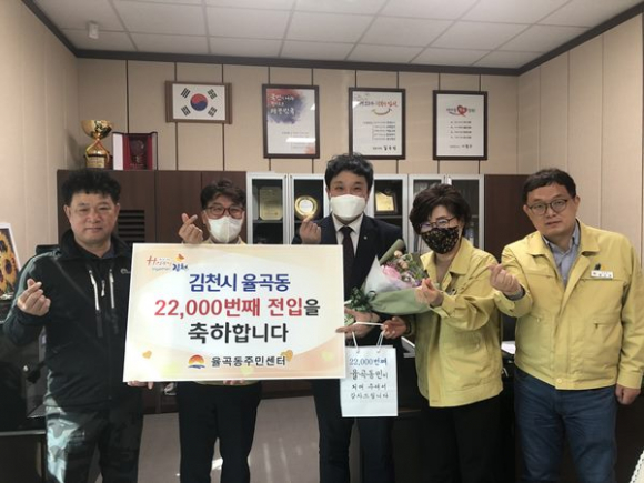 율곡동 전입 22,000번째 주인공은 대전광역시 중구에서 거주하다 율곡동 한신더휴퍼스트리움으로 전입신고를 마친 관내 금융기관에 근무하는 인OO씨(38세) 가족이다.