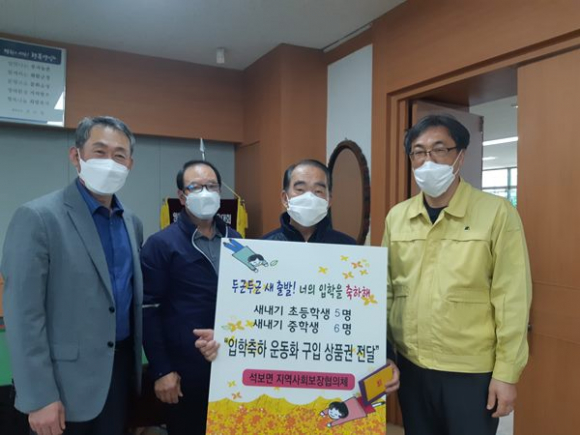 경북 영양군 석보면지역사회보장협의체(공동위원장 강상수, 장수상)는 4월 첫째 주, 새내기 초등학생(5명)과 중학생(6명)에게 운동화 구입 입학 선물(10만원)과 축하 편지를 전달하였다.