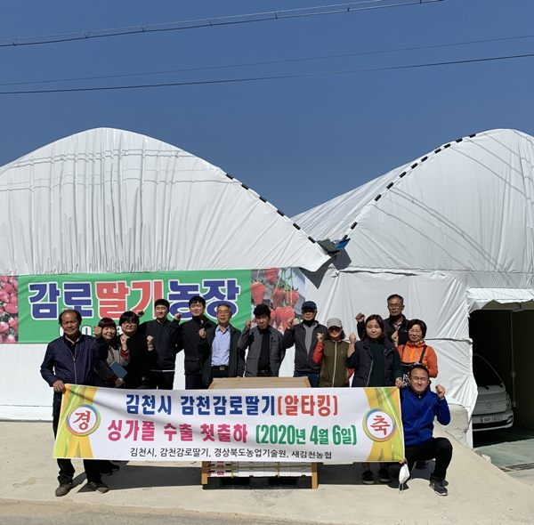 김천시(시장 김충섭)는 지난 2월 태국 백화점 수출입점에 이어 싱가포르 백화점 입점을 위해 지난 4월 6일 김천딸기 150kg 수출길에 올라 5월까지 지속해서 수출이 이어진다고 밝혔다. 이날 수출된 “알타킹 딸기”는 김천에서 태국 상류층 백화점에 입점 되어 많은 호평을 받은 품종으로 경북도청 과채류시험연구소에서 출원한 신품종 딸기로 이 딸기는 복숭아향이 나고 경도와 보구력이 좋을 뿐만 아니라, 저장성이 뛰어나 수출에 적합한 품종으로, 김천에서 70%이상 생산되고 있다.