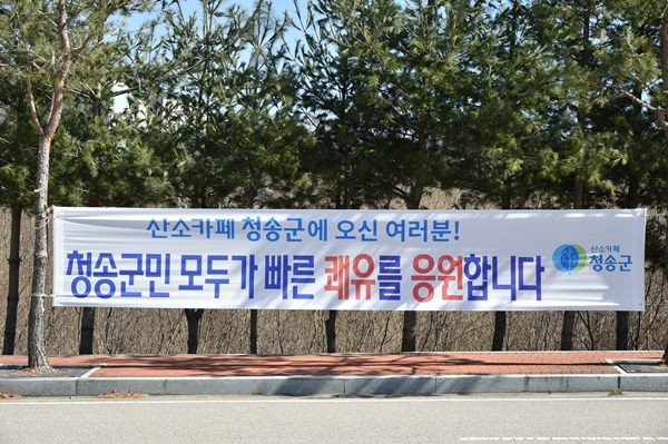 또한 지역 주민들도 ‘청정 주왕산에서 여러분들의 빠른 쾌유를 기원합니다’라는 현수막을 곳곳에 내걸며 “대구·경북이 힘든 시기를 겪고 있는 만큼 조금 불편하더라도 고통을 나누고 청정지역 ‘산소카페 청송군’에서 하루 빨리 회복해 돌아가기를 바란다.”고 응원하는 등 성숙한 군민 의식을 보여줬다.
