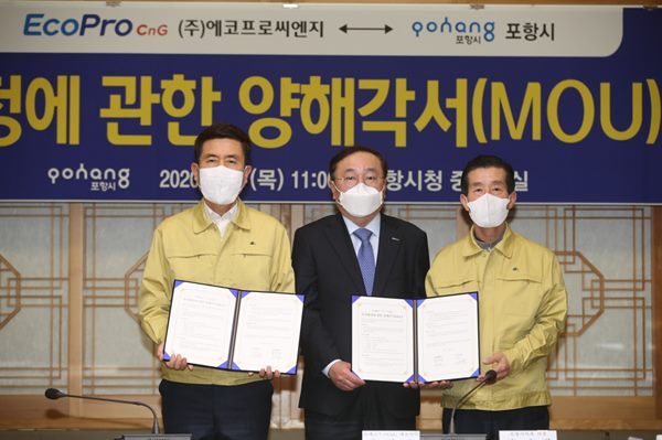 포항시는 4월 9일, 이강덕 포항시장과 서재원 포항시의회 의장을 비롯하여 에코프로씨엔지 박석준 대표이사와 임직원들이 참석한 가운데 에코프로씨엔지와 120억 원 규모의 투자양해각서(MOU)를 체결했다.