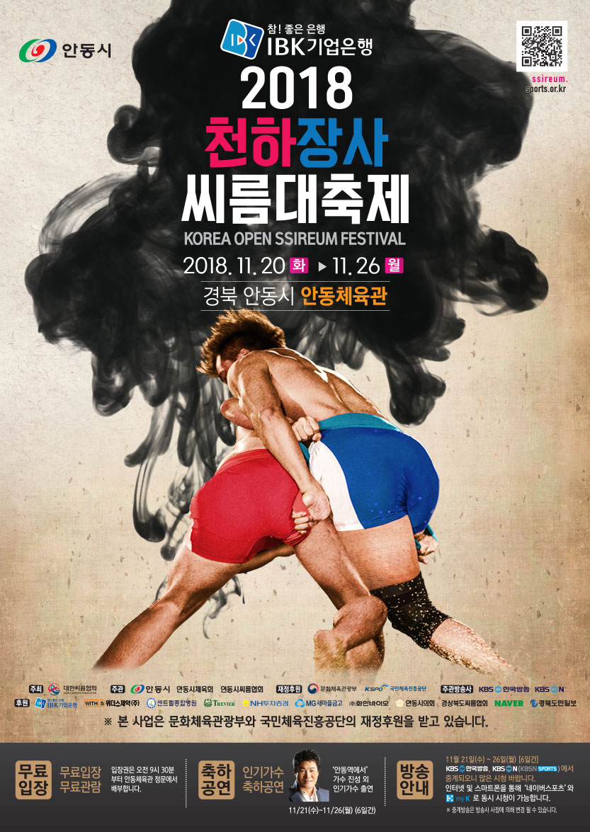 '2018 천하장사 씨름대축제'가 오는 20일(화)부터 26일(월)까지 7일간 안동체육관에서 열린다.