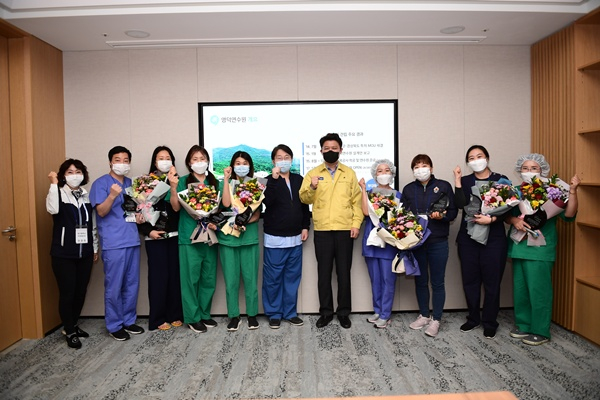 영덕군은 지난 4월 13일 오후4시 삼성인력개발원 영덕연수원 생활치료센터에서 헌신적으로 노력하고 있는 의료진 32명에게 명예군민패를 수여했다.