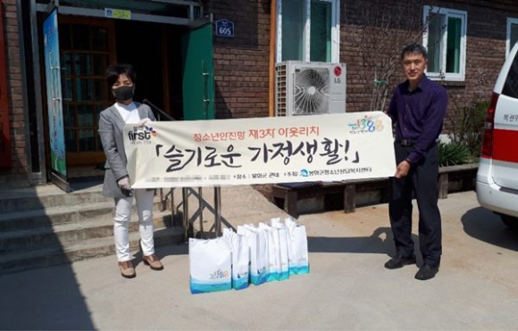 청소년의 자기 관리 및 건강한 실내생활을 돕기 위한 물품 전달은 코로나 19 예방 차원에서 면대면이 아닌 대상자와 사전 전화통화 후 물품 배달 장소를 지정한 다음 비대면으로 전달하였다.