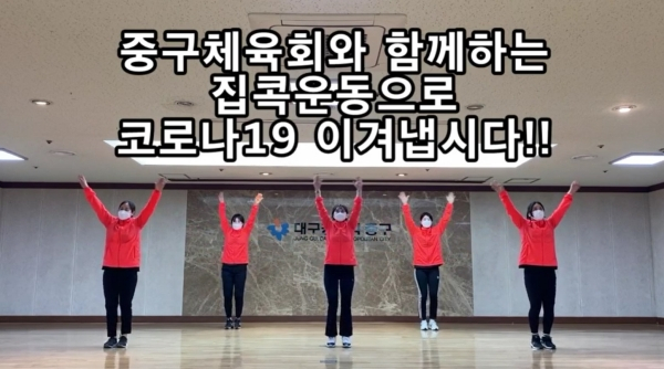 대구 중구청(구청장 류규하)과 중구체육회(회장 이정순)는 코로나19로 인해 야외 체육 활동이 어려운 주민들을 위하여 ‘중구체육회와 함께 하는 에너지 업! 챌린지’ 동영상을 자체 제작, 제공했다.