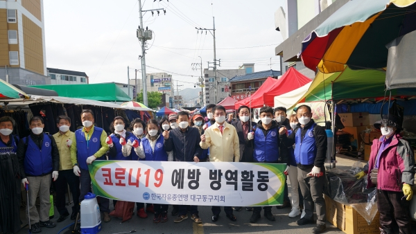 한국자유총연맹 대구동구지회(회장 김희목)는 지난 16일 코로나19의 지역 확산 방지와 안전하고 쾌적한 전통시장 조성을 위한 방역 봉사활동을 실시했다.