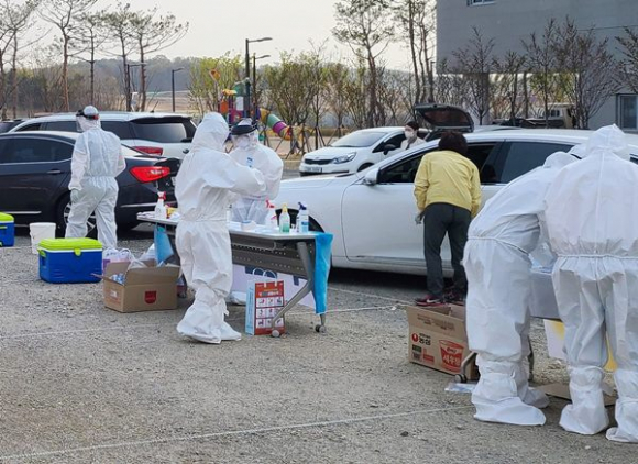 시는 지난 15일부터 18일까지 경북도서관 임시 주차장에 현장임시선별진료소를 설치하고, 보건소 가용 인력을 총동원해 드라이브 스루 방식으로 검진을 하고 검체를 채취했다.