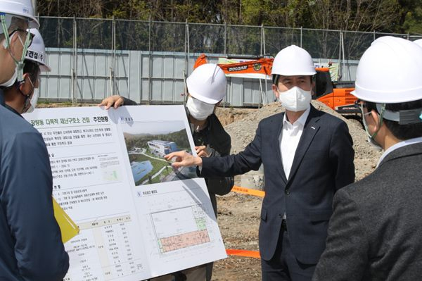 이강덕 포항시장은 4월 21일, 지진과 같은 재난 발생 시에 주민들이 신속하게 대피하고 복구 시까지 안전하게 생활할 수 있도록 내진 성능이 확보된 다목적 재난구호소의 건립 현장을 찾아 사업추진 현황을 점검하고 관계자들을 격려했다.